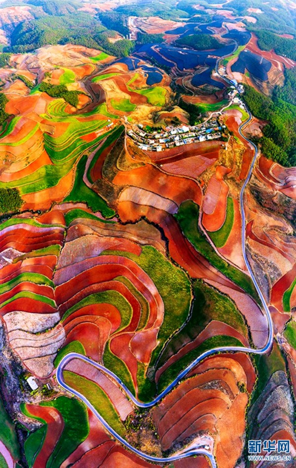 2021年3月21日,航拍视角下的东川红土地。新华网发(崔永江 摄)