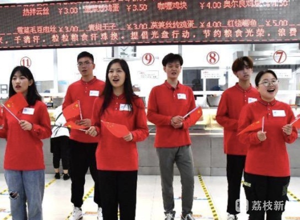 国庆节刚过,为了将爱国主义教育和迎新生工作结合起来,南京工业大学组织开展了“红歌快闪”活动,7名高年级学生挥动着五星红旗,依次演唱了《我和我的祖国》《我们都是追梦人》《歌唱祖国》等三首红色歌曲,其间,他们还走进就餐的新生人群,邀请新生共同加入演唱队列,用歌声歌唱祖国,祝福祖国。“我很自豪能够加入到这次活动中,当我把小红旗交给新生,邀请他一起来唱时,我感到我真的是一名学姐了,不仅要自己爱国荣校,还要把这种精神传递给学弟学妹。”经管学院会计2002班刘漪宁说道。
