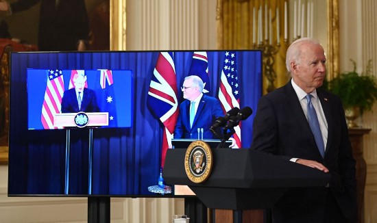 9月15日,美国总统拜登、英国首相约翰逊和澳大利亚总理莫里森举行视频会议,共同宣布组成三边安全联盟AUKUS,而该联盟成立后的第一个措施,就是美英表示将支持澳大利亚获得核潜艇能力。这使得法国与澳大利亚之前达成的900亿澳元潜艇购买协议作废,成为AUKUS的第一个“牺牲者”。