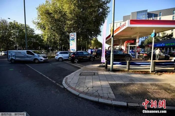 由于运油卡车司机短缺,汽油、柴油等燃油难以及时运至加油站,导致英国各地加油站出现“油荒”,民众持续排队加油。
