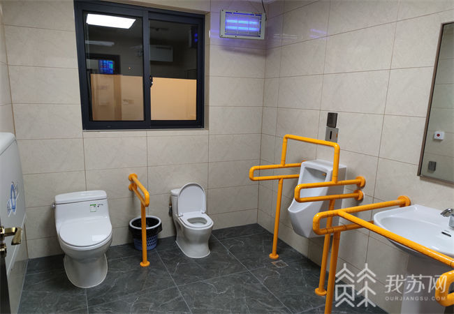 考虑到该地段人流量多以老人和小朋友为主,公厕内的设施很好地照顾到了这两类人群,除日常的蹲厕外,还特别加装了2处坐厕,同时加装了防滑扶手和防倾倒紧急呼救器,方便老人家起身。