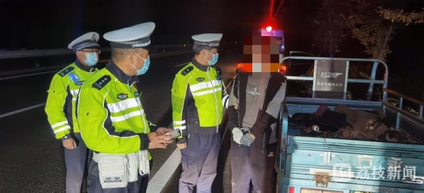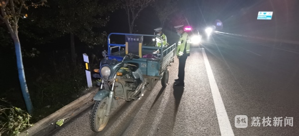 今天(10月12日)凌晨3:30左右,徐州沛县交警大队滨湖中队民警在徐沛快速路41KM+100米处巡逻时,发现一辆违规驶入快速路的摩托三轮车,于是民警立即示意该车停车接受检查。