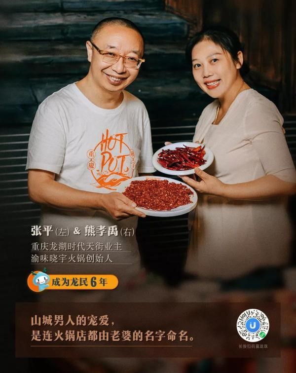 张平,重庆龙湖时代天街业主,著名火锅品牌“渝味晓宇”创始人,店名是以他妻子熊孝禹名字命名。夫妻俩从枇杷山开启火锅创业,广受消费者喜爱,品牌应运而生,公司与团队入驻天街,随着天街商业不断壮大的号召力和影响力,张平悉心推动品牌发展,2012年,渝味晓宇火锅被评为重庆火锅50强TOP1,2014年荣登《舌尖上的中国2》。如今,在重庆拥有5家直营店、全球300多家加盟店,火爆全国及周边国家。热气腾腾的火锅,也升温着他倆的事业和爱情。