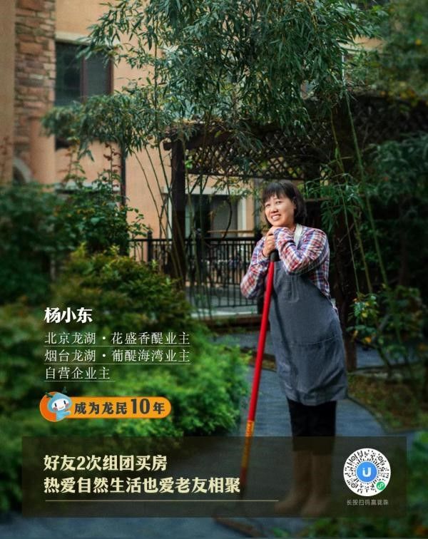 杨小东,一个地道的北京人,10年前她因朋友推荐,购买了北京龙湖·花盛香醍的下叠住宅,其中很重要的原因离不开前后院相加约300平的花园,能满足她种花种树的心愿,也能实现与三两老友相聚,谈天说地的愿望。因为认可龙湖的品质和服务,2年后又和朋友组团购买了烟台龙湖·葡醍海湾的房子。如今,院子里的小树长成了茂密的大树,孩子也成家立业了,一个个平实美好的生活瞬间,这是专属于她的向往的生活。