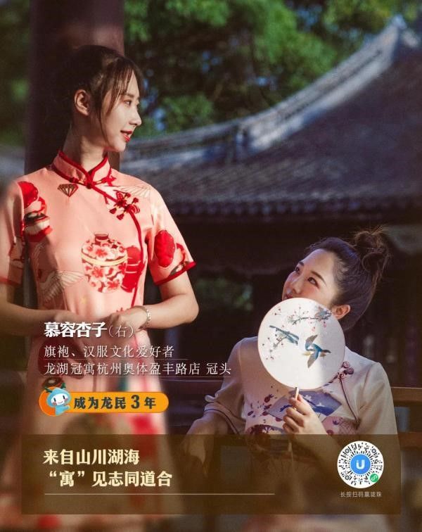 25岁的慕容杏子,是浙江龙湖冠寓的一名“冠头”,也是一位旗袍文化爱好者,因为冠寓丰富多彩的社群活动,她很快认识到同样喜欢旗袍文化的、志同道合的朋友,也因杭州这座婉约秀美著称的城市,她们一起点花钿,描青黛,一起穿着旗袍出游拍片,就像是一对古画里的大家闺秀。不仅如此,慕容杏子也将旗袍、汉服文化不断分享给周边的小伙伴,在她看来,让更多人了解、喜欢爱旗袍文化,也是在传播东方文化内涵。