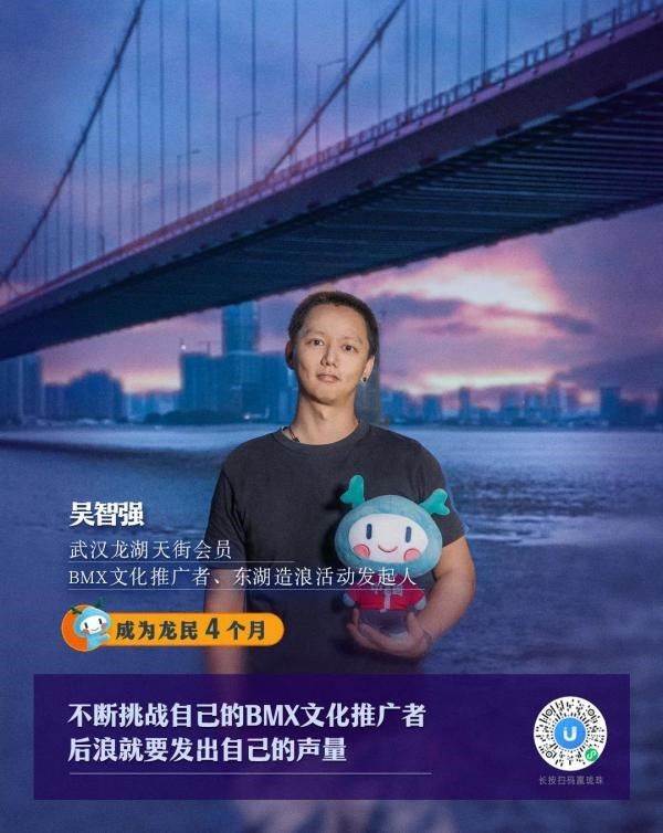 吴智强,龙湖武汉江宸天街会员,也是BMX文化推广者、东湖造浪活动发起人。对于喜欢挑战自己的他来说,小众运动、BMX小轮车、露营、剑玉都属于吴智强的日常。他说:“沉浸在不同运动中,让他激发出更多活力和激情。早年因在各地参与运动比赛,见证了龙湖天街的繁华和品牌的多样性,所以在武汉江宸天街开业后,他时常邀约朋友在此聚会:他们一起解锁了滑雪场、拳击馆、射箭馆、UP Park落日海滩篮球场…他说:“天街就像一位挚友,总是最懂我们年轻人想要。”