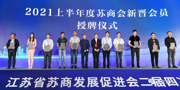 会议为江苏省苏商发展促进会智库专家委员会揭牌,正式启动“智库赋能实业(实业灯塔计划)”首批示范企业征集活动;举行2021上半年度苏商会新晋会员授牌仪式,为联席会长单位、新晋理事单位、新晋会员单位授牌。