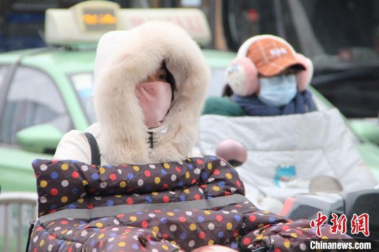 资料图:民众出行时,穿着棉袄保暖。 李明明 摄