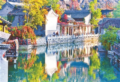 密云区的司马台长城风景区(古北水镇)是观赏红叶最佳路线之一。在这里看红叶可以选择缆车来节省体力,俯瞰层林尽染,仙女楼上的景色则更加壮美秀丽,远近色彩尽收眼底,浓浓淡淡的各种红叶、黄叶,还有枝头的红色山楂和山枣,把长城簇拥在一片缤纷里,愈加磅礴。