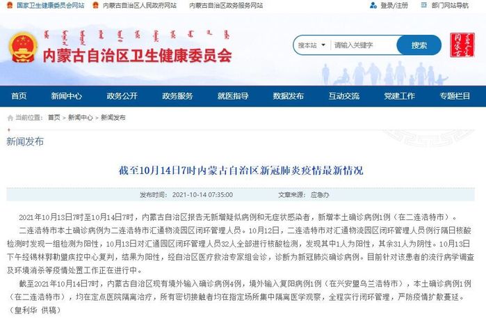 内蒙古卫健委网站截图