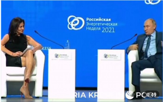 综合俄罗斯《报纸报》、俄新社报道,普京当地时间13日在莫斯科出席“俄罗斯能源周”主题论坛全会,全会由美国消费者新闻与商业频道(CNBC)的主持人哈德利·甘布尔主持。甘布尔提问“在你们不供应天然气的背景下,如何让欧洲相信你们是可靠的天然气合作伙伴”后,普京幽默回答说主持人是位很漂亮的女性,但他接着反驳说俄罗斯加大了对欧洲的天然气供应量,称这位主持人是被误导了。