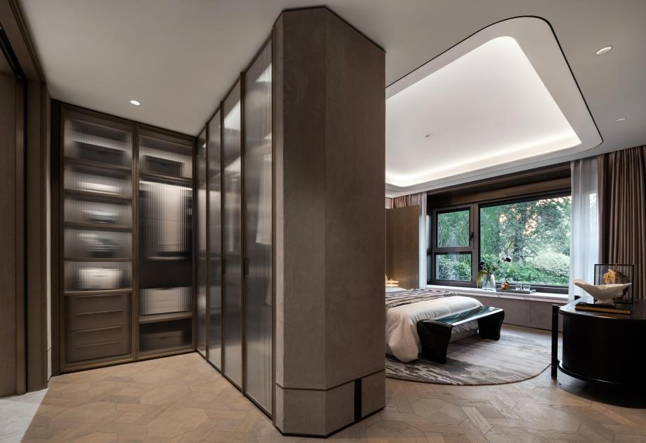 为了匹配屋主的更高审美,选取奢雅主卧大套间设计,配备瞰景飘窗、步入式衣帽间、私享卫浴空间,悦呈静谧私享的身心栖息之境,带来更强的居住舒适感和安全感。
