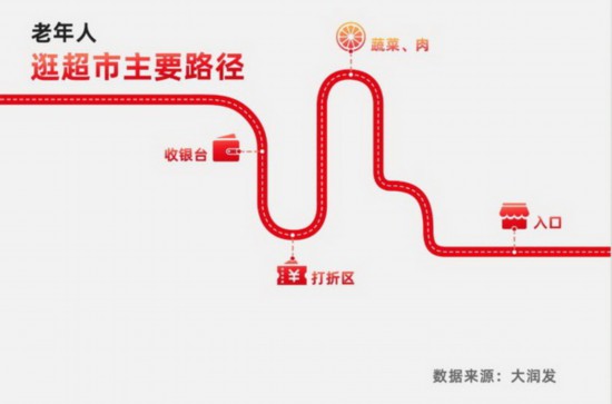 大润发相关负责人表示,这份报告是为了呼吁对随迁老人的更多关注。和店员唠嗑、聊家常背后体现的是社交需求和归属感,“家、公园、超市”基本是他们在大城市的主要生活路径。而为帮子女省钱,“打折区、果蔬早市区、收银台”也是他们逛超市的主要路径。