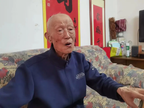 田岚的外公名叫谢金善,住在在泗阳县淮海西路附近的一个小区,今年100岁。他曾参加过抗日战争、解放战争,如今思维依旧很清晰,身体也很硬朗。