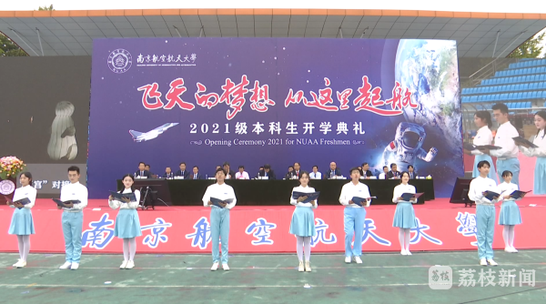“航空报国 志在长空”在南京航空航天大学将军路校区,来自南航各个学院的大一新生们,举着标语,为即将开启的大学生活呐喊助威,开学典礼上,同学们受邀上台佩戴校徽,正式成为南航一员,新生代表还为大家带来原创诗朗诵《学好本领,强国有我》。南京航空航天大学长空学院大一新生曹子安说,我希望之后能在无人机、高速飞行器方面能有自己的一番见解,就像刚刚在朗诵里说的那样,希望自己以后学好本领,追求卓越。