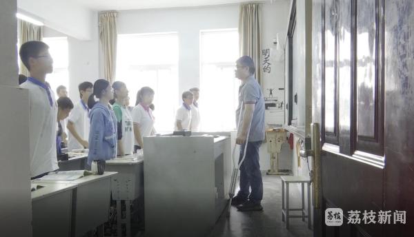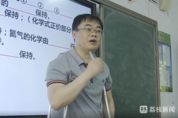 泰州市姜堰区励才实验学校九年级化学老师陈石因意外导致右腿骨折。在手术治疗还未完全康复的情况下,心里牵挂着学生的陈石毅然拄着拐杖坚守三尺讲台。