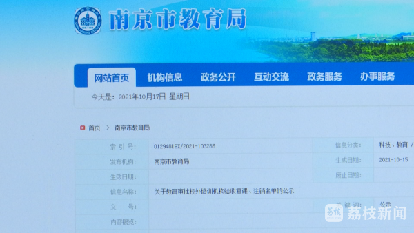 南京市教育局提醒,校外教育培训机构如有办学资质、办学行为、资金监管、疫情防控等方面问题,大家都可以监督举报。各个区教育部门的监督举报电话,家长可以在教育局官网上查询。