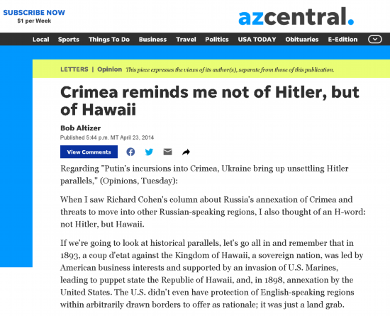 这也是为何,在前些年俄罗斯与乌克兰因为克里米亚地区出现争端后,有美国人就感叹这一幕令他们想起了当年美国吞并夏威夷时的场景。