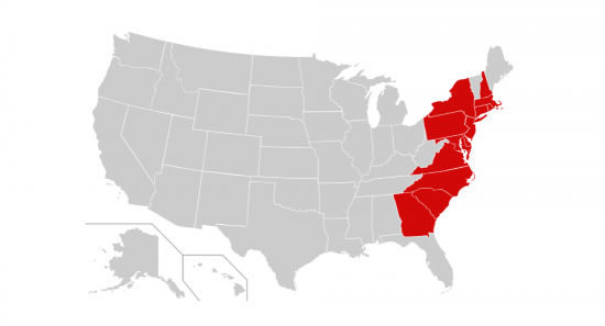 不过,耿直哥希望大家先留意一下图中红色的区域,因为这片区域是1776年7月4日宣布从英国人那里“独立”的13个殖民地的版图,也是美国“独立宣言”发布后美国最原始的版图。这片区域,只是如今美国全部版图的一个零头。