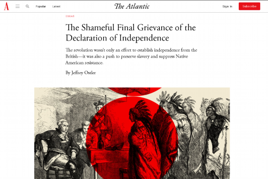 《大西洋月刊》这篇文章还指出,正是受到这么一份“独立宣言”的“感召”,当时很多担心奴隶起义、或是正在从印第安人那里抢夺地盘的白人殖民者,才纷纷加入了美国的独立战争,一起战胜了英国人,创建了美国,为美国完成了“原始积累”。