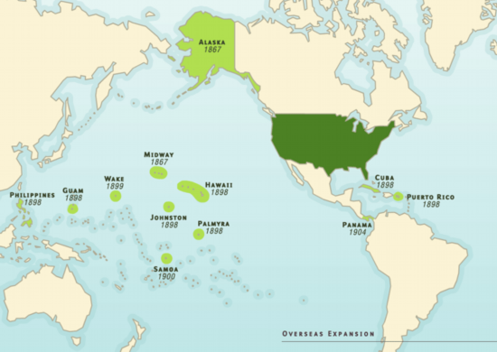 然而,美国的扩张并没有止步于此。大量公开资料显示,在打完由于蓄奴等一系列问题而引发的血腥内战、导致60多万人死亡后,美国反而在19世纪末开始了疯狂的海外扩张,先后通过从俄罗斯人那里购买和从西班牙殖民者那里抢夺的方式,获得了阿拉斯加、古巴、关岛、波多黎各以及菲律宾等一系列海外领土。