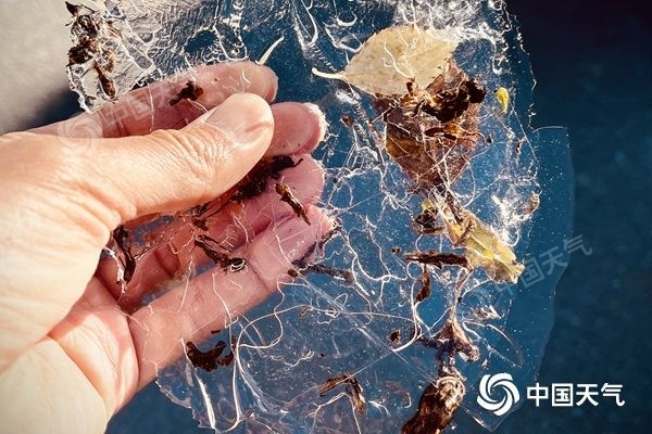 北京延庆昨日冷到结冰。(图/中国天气网 王晓)