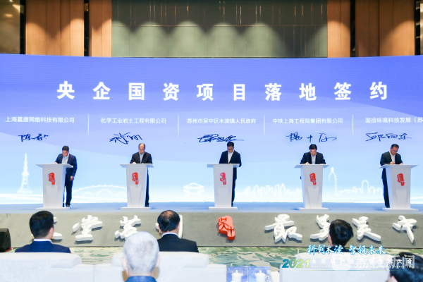 现场,启动了绿色城市示范基地,同时发布了木渎镇企业服务平台上线及政策礼包,用务实举措彰显“软实力”。今年以来,苏州吴中区木渎镇已经有9个项目签约,总投资超120亿元。此次大会共有央企国资项目、科技创新项目、智能制造产业项目三大项目落地签约、一批企业集体入驻木渎产业园,签约项目及存量更新项目投资超双百亿元。