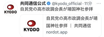 【环球网快讯】日本共同社刚刚消息,靖国神社17日至18日举行秋季例行祭典,自民党政调会长高市早苗18日参拜了靖国神社。