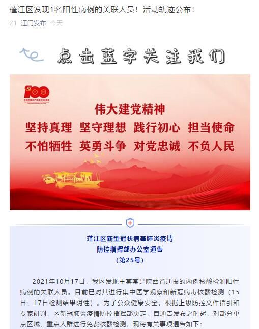 荔枝新闻讯 据“江门发布”微信公众号消息,广东省江门市蓬江区新型冠状病毒肺炎疫情防控指挥部办公室发布通告(第25号),全文如下: