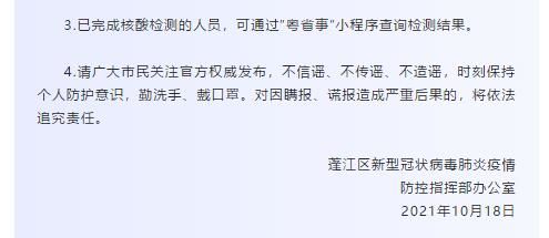 4.请广大市民关注官方权威发布,不信谣、不传谣、不造谣,时刻保持个人防护意识,勤洗手、戴口罩。对因瞒报、谎报造成严重后果的,将依法追究责任。