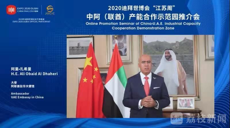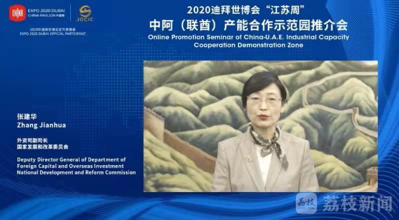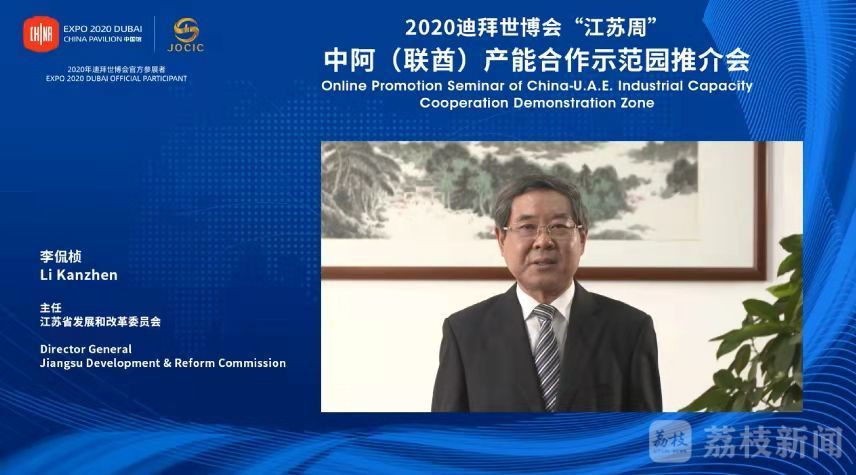 荔枝新闻讯 10月19日,2020迪拜世博会“江苏周”系列活动——中阿(联酋)产能合作示范园推介会在线上举办。作为“江苏周”活动中的重要一项,此次线上推介会主要展示了江苏“一带一路”交汇点建设成果,并重点推介了中阿两国共建“一带一路”重大合作项目——中阿(联酋)产能合作示范园。