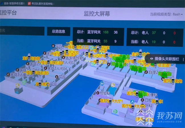 百禾怡养院目前在用的智慧养老基础建设采用“物联网+”新型信息技术,以院内的数据中心和监控平台为支撑,集成智能看护系统等,比如老人定位求助、卧床监测等功能。院内走廊和房间天花板上每隔10米就装有一个蓝牙终端接收器,如遇紧急情况,只需轻按智能胸卡上的“SOS”按钮,在响起警报声的同时,护工、护士也能在智能终端上看到老人姓名、位置以及相关的监控画面,迅速赶到进行应急处置;生命体征检测床垫内有感知芯片,躺在床垫上可以实时检测呼吸、心跳等生命体征数据,以及是否在床、是否体动、离床时间和离床次数或其他异常状态的报警,并采用无线传输的方式,把数据传输到院内数据中心及护士的智能终端上。