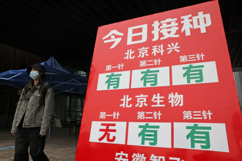 建邺区国际博览中心新冠疫苗接种点,市民从今日接种公告牌旁走过。通讯员 张建生 南报融媒体记者 徐琦摄