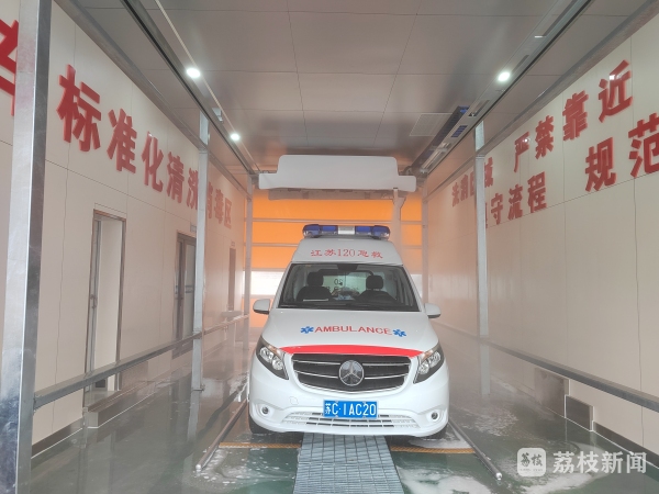 “以前都是用喷壶加氯水和酒精进行全车进行喷杀,耗时长效率低。洗消中心建好之后,我们把救护车开进去可以进行全自动的清洗,效率高了也更安全了。”120驾驶员顔飞高兴的说。