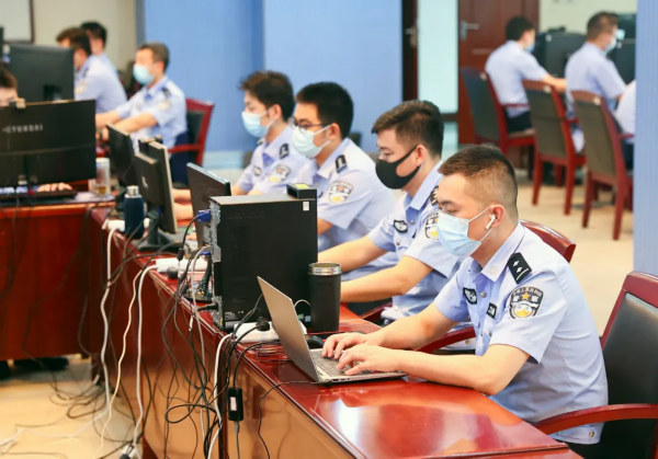 在疫情防控流调作战中心,民警们各司其职、紧而有序细致开展流调溯源。南报融媒体记者 冯芃 摄