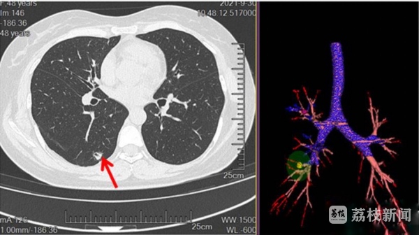 肺结节,在这年头已不是个让人陌生的医学名词。不少人都在体检中发现了“藏”在自己肺里的结节。48岁的方女士(化姓)最近就在一次手术前的CT检查和三维立体成像中被发现肺部右肺上叶前段、右肺下叶背段多发结节,可见分叶、毛刺、胸膜凹陷征象。