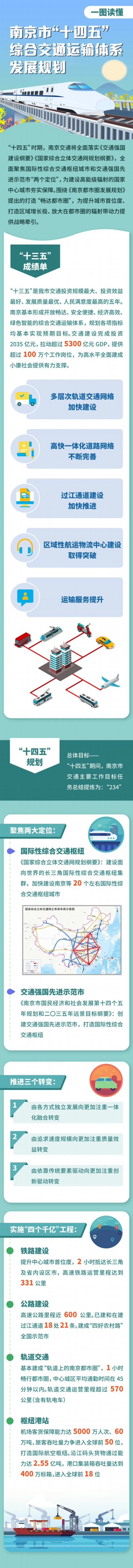 10月21日,南京市举行“十四五”重点专项规划系列专题新闻发布会(第三场),《南京市“十四五”综合交通运输体系发展规划》正式发布。南京将重点实施10项具体任务,全面打造与“四高城市”相适应的现代化综合交通运输体系。