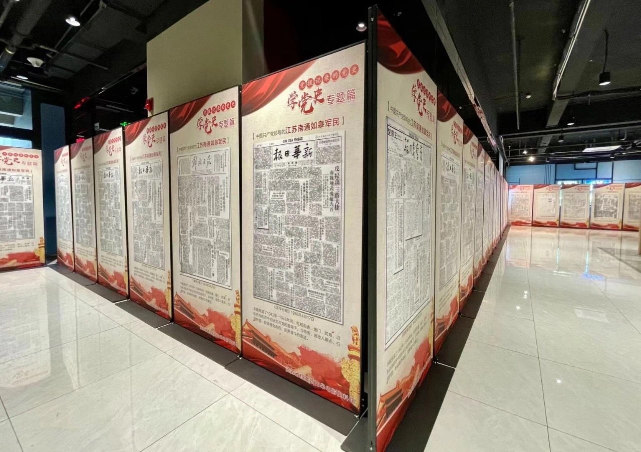 在该馆一楼,设置《学党史专题篇——党报记录的党史》展区,充分展示自1921年建党以来我党历史上大量珍贵媒体党报、文献资料。通过展示,回顾党在各个不同时期的组织建设和发展状况、党领导全国各族人民进行革命和建设的发展历程和史实的记载,进行爱国主义教育。