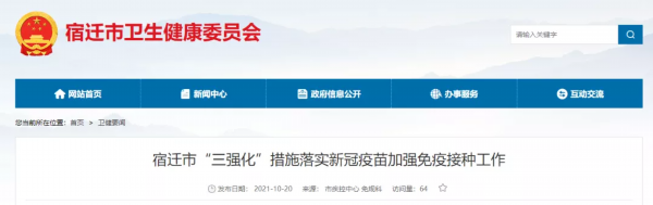 今天,小编从宿迁市卫生健康委员会官网了解到宿迁市“加强针”的最新消息。