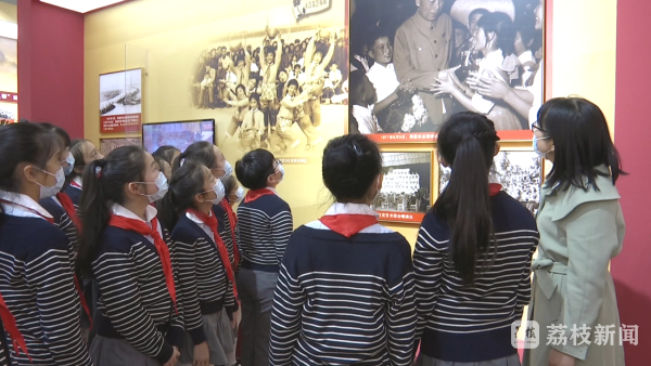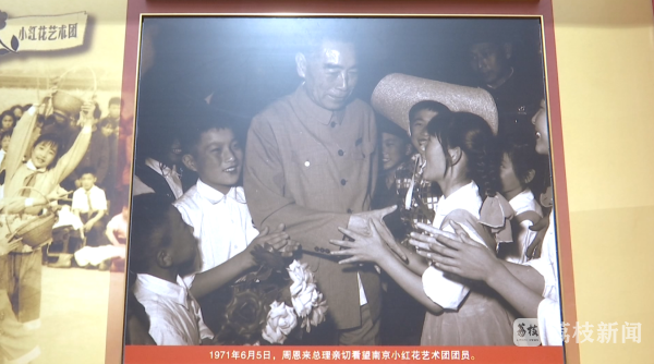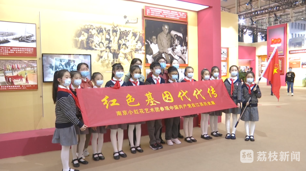 中国共产党在江苏历史展展厅内,来自南京小红花艺术团的老师,正在向同学们介绍前辈的故事,1962年,小红花艺术团合唱演出,20世纪70年代,小红花艺术团为社员演出舞蹈,展出的一张张老照片,让同学们振奋不已。南京市艺术小学(南京小红花艺术团)五年级学生储妙希说,以后要好好学习艺术,好好学习文化,能在舞台上把小红花培养的艺术传递到四面八方,传到世界各地。