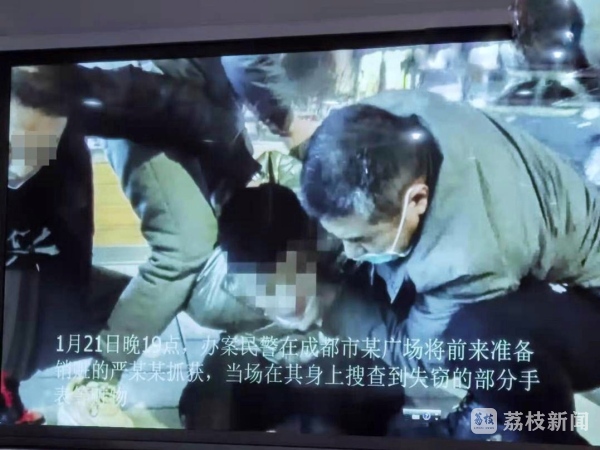 1月21日晚7点,南京警方在成都市某广场将前来准备销赃的严某某抓获,当场在其身上搜查到失窃的4块手表等物品,随后又在其暂住地将剩余赃物全数追回。