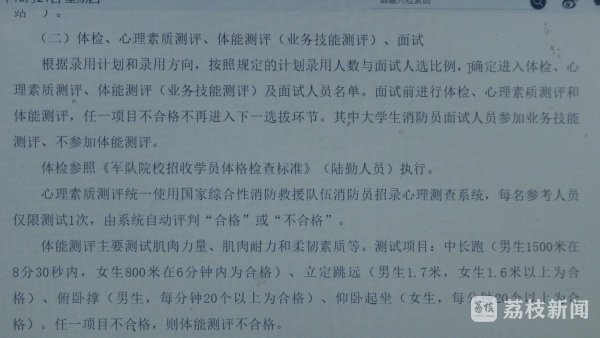 记者还注意到,这次国家综合性消防救援队伍计划招录1500人,比去年减少了近一半。公告还单独明确了体检、心理素质测评和体能测评的注意事项。