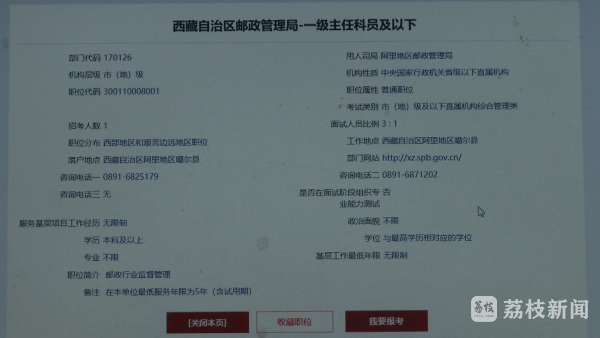 2022年国考招录计划中的66.9%都面向应届毕业生,对于很多往届毕业生来说,岗位的选择余地比较小。朱聪就是往届毕业生,本科学的工程造价管理专业, 他告诉记者,国考岗位中,适合他的岗位非常少,所以他只能报考了一个三不限岗位,就是西藏阿里地区邮政管理局的岗。截至目前,本次国考竞争最激烈的岗位就是西藏阿里地区邮政管理局一级主任科员及以下一岗。公考培训教师许祎涵介绍,随着审核人数的增多,最终很可能出现万人竞争一个岗位的局面。