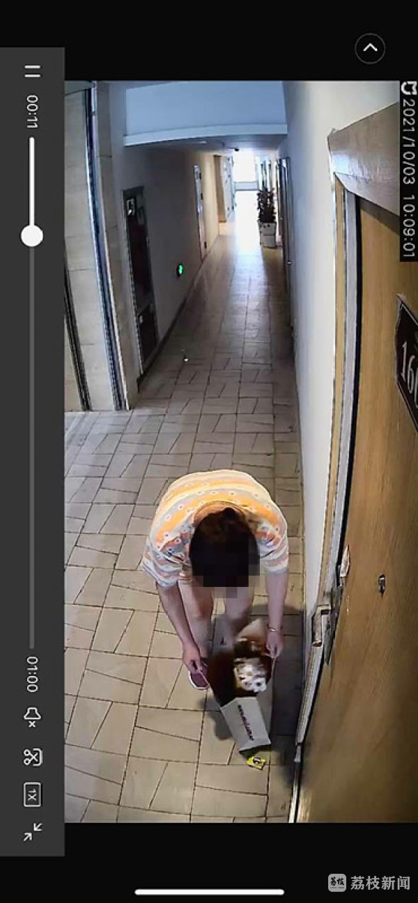 10月2日,李女士的男友将礼物装在一个袋子里,打电话给她,说给她送了惊喜。因为当晚李女士男友要出差,而李女士第二天上午才能回来,她男友便将袋子放在了家门口:“我们家门口有摄像头,他没太在意,就放在那儿,觉得不会有人拿。”