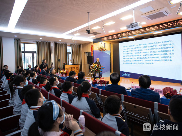 活动现场,丘成桐教授向南京市教研室、天正小学赠送个人自传《我的几何人生》,天正小学回赠学生自制纸浆画和数学教育研究专著。此次活动也是丘成桐教授首次走进小学校园开讲。