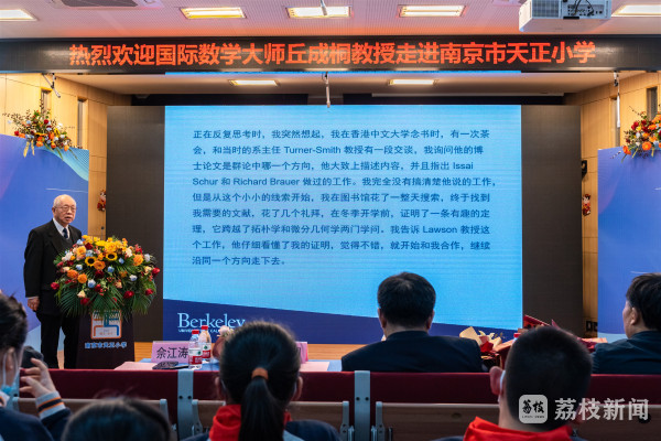 丘成桐,33岁就被授予世界数学界的最高荣誉--菲尔兹(Fields)奖章。再此后,几乎拿遍了数学界所有的大奖。作为一个享誉世界的数学大师,丘成桐教授非常关心国内教育,特别是学生们的数学培养。昨天(10月21日)下午,丘成桐教授走进南京市天正小学做主题演讲,并与师生代表面对面交流。