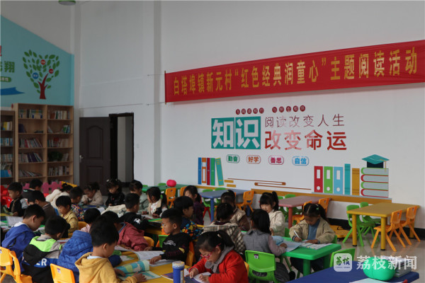 金秋十月,阳光明媚,秋高气爽。在东海县白塔埠镇新元村三楼近百平方的农家书屋内,二三十位儿童聚集在一起,在老师的辅导下津津有味地聆听、阅读着红色故事,传承革命传统,感悟红色精神。“关键时刻,只见董存瑞冲上前,高举起炸药包,毅然拉响导火索……”老师抑扬顿挫的演说深深吸引并打动着每一位孩子们的心。