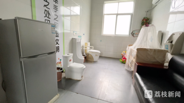 近年来,东海县城管局在县财政的支持下,投入资金600多万元,新建、改建各类公厕43座,其中达到“星级”标准的公厕20座。坐落在步行街、火车站、体育中心、晶苑广场等娱乐、健身场所邻近的公共厕所提档升级,既美化了公厕内外环境,又解决了广大居民如厕难的局面。为切实满足群众需求,东海县城管局将公共厕所改造成城市公共服务驿站,为市民提供多种生活便捷服务,彰显着一座城市的温度。在东海县晶苑路公厕里,不仅能搜索到免费无线网,也拥有功能齐全的休息驿站。母婴室里也是设施齐全,甚至配备了冰箱,以及各种儿童设施。