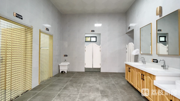 10月20日,记者在东海县幸福桥西边的公厕看到,敞亮的镜面光滑整齐,厕所内配备了“第三卫生间”,方便哺乳期妇女或老年人使用。在儿童洗手台前配上了可爱的卡通造型。智能空气喷香机时刻保持空气清新。在公厕门口,还设置了斜坡,方便轮椅无障碍通行……细节之处体现着浓浓温情。据了解,这间公厕于今年7月份建成并投入使用。公共厕所的建设升级,不仅能解决市民们的如厕难题,也能体现一座城市的文明水平。