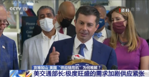 美国供应链紧张,港口货物积压,市场商品短缺,状况日益恶化,不见有效缓解。本月17日,美国交通部长布蒂吉格表示,美国面临的供应链问题将持续到2022年。而对于供应链运行受阻的原因,布蒂吉格将其归结于“当前美国极度旺盛的需求加剧了供应方面的紧张”。他表示,社会需求的旺盛程度已经创下纪录,因此抬高了零售价格,并导致美国的交通运输设施无法满足这些需求。
